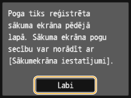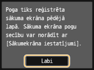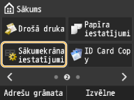 Ja izdzēšat pašu bieži izmantoto iestatījumu, kas opcijā <Kopēšana>, <Fakss> vai <Skenēšana> ir reģistrēts rādīšanai sākuma ekrānā, tiek izdzēsta arī sākuma ekrānā reģistrētā poga.