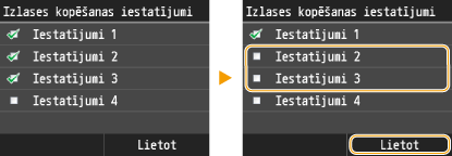 Atzīmējiet izvēles rūtiņas visiem tiem iestatījumiem, kas ir jārāda sākuma ekrānā, un pieskarieties pie <Lietot>.