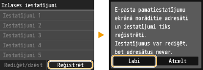 <Jā>.Ja 2. darbībā izvēlējāties jau reģistrētus iestatījumus, tiks parādīts apstiprinājuma ekrāns ar jautājumu, vai ignorēt iepriekšējos iestatījumus.