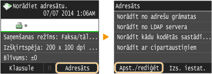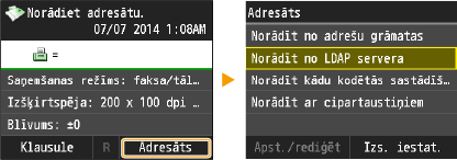 Ja birojā ir instalēts LDAP serveris, varat izmantot serverī reģistrētus adresātus. Lai norādītu adresātus, piekļūstiet LDAP serverim, izmantojot iekārtu, un pēc tam meklējiet adresātu.
