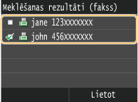 Lai meklētu adresātus, varat izmantot tādus kritērijus kā personvārds, faksa numurs, e-pasta adrese, uzņēmuma nosaukums un nodaļas nosaukums. Vienlaikus var norādīt vairākus meklēšanas kritērijus.