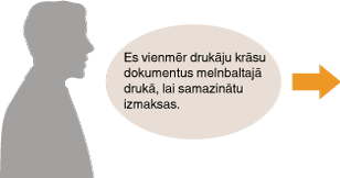 Printera draiverī kā noklusējuma iestatījumu norādiet melnbalto drukāšanu. Turpmāk drukājot vairs nebūs jāmaina krāsu režīms. Noklusējuma iestatījumu mainīšana