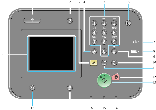 Galite peržiūrėti kopijavimo, faksogramų siuntimo ir kitų užduočių eigą, taip pat klaidų būsenas. Ekranas yra liečiamasis pultas, kuriame liesdami galite nustatyti konkrečius parametrus.