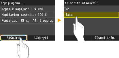 iš karto norite atšaukti kopijavimą, ekrane bakstelėkite <Atšaukti> arba valdymo pulte paspauskite
