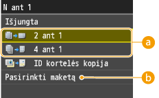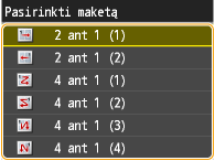 Naudojant <2 ant1>/<4 ant1> automatiškai sumažinamas kopijavimo mastelis (kopijavimo mastelis rodomas ekrane). Prieš paspausdami