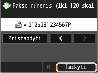 Jei reikia pauzę įterpti fakso numerio pabaigoje, bakstelėkite <Pristabdyti>.