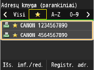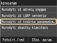 Naudojant adresų knygelę galima nurodyti adresatą pasirenkant iš užregistruotų adresatų sąrašo arba ieškant adresato vardo pagal gavėjų vardus. Galite tiesiogiai nurodyti adresatą įvesdami adresatui priskirtą trijų skaitmenų numerį (kodinio rinkimo numerį).