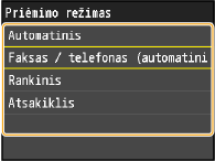 Kai pasirenkate <Faksas / telefonas (automatinis perjungimas)>