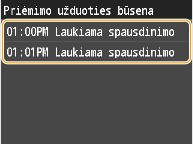 Aparatas persiunčia dokumentą, kurį pasirenkate iš visų atmintyje saugomų dokumentų. Norėdami naudoti šią funkciją, pirmiausia suaktyvinkite priėmimo į atmintį funkciją. Priimtų faksogramų saugojimas atmintyje (priėmimas į atmintį)