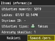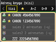 Adresų knygelės naudojimo instrukcijų žr. skyriuje Nurodymas iš adresų knygelės (faksas).
