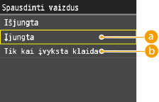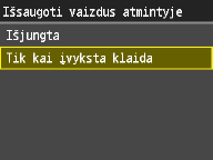<Įjungta> arba <Tik kai įvyksta klaida>