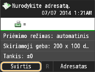 Jei prijungtas Copy Card Reader-F1, linija bus atjungta, kai bakstelėsite <Svirtis> ir išimsite valdymo kortelę, kol linija bus įjungta.