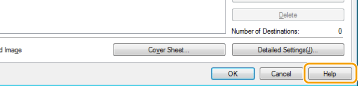 Fakso tvarkyklės ekrane spustelėjus [Help] (Žinynas) rodomas žinyno ekranas. Šiame ekrane galite peržiūrėti informaciją, kurios nėra vadove el. instrukcija, įskaitant informaciją apie tvarkyklės funkcijas, pvz., dažnai naudojamų parametrų registravimą, ir kaip jas nustatyti.