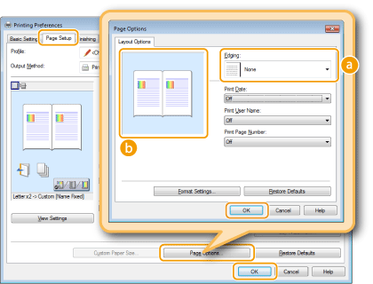 Skirtukas [Page Setup] (Puslapio sąranka) Spustelėkite [Page Options] (Puslapio parinktys) Pasirinkite kraštinės tipą dalyje [Edging] (Apvadas) [OK] (Gerai)  [OK] (Gerai)