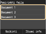Jei atmintyje saugomi dviejų ar daugiau vartotojų apsaugotieji dokumentai, pirma rodomas ekranas <Pasirinkti naudotoją>, o tik po to <Pasirinkti failą>. Bakstelėkite savo vartotojo vardą.