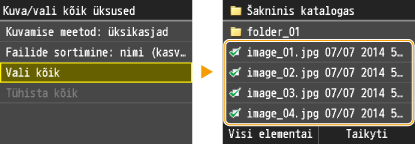 Jei pasirinkote failą prieš bakstelėdami <Visi elementai>, galite pasirinkti tik vienodo formato failus.