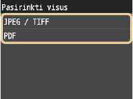 Bakstelėkite <JPEG / TIFF> arba <PDF>.