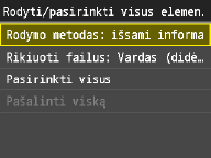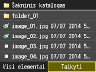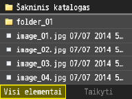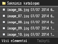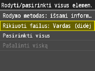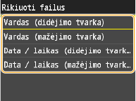 Kaip numatytąjį failų rūšiavimo tvarkos parametrą galite nurodyti <Vardas (didėjimo tvarka)> arba <Data / laikas (didėjimo tvarka)>.