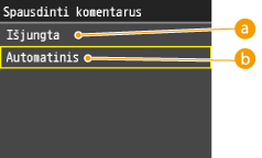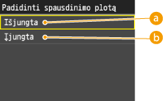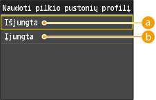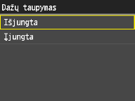 Šis parametras leidžia nustatyti dažomųjų miltelių taupymo funkciją. Įjungus dažomųjų miltelių taupymą dokumentams spausdinti naudojama mažiau dažomųjų miltelių, todėl dažomųjų miltelių pakanka ilgiau.