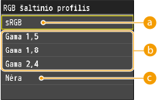 Kai <Nėra> pasirinkta dalyje <RGB šaltinio profilis>