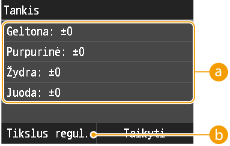 Koreguoja <Geltona>, <Purpurinė>, <Žydra> ir <Juoda> spausdinimo tankį.