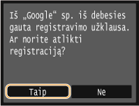 Taip pat galite užregistruoti įrenginį iš mobiliojo įrenginio arba „Google Chrome“*. Aparato ekrane prieš baigiant registraciją rodomas šis patvirtinimo ekranas. Paspauskite <Taip>, kad užbaigtumėte registraciją.