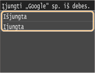 Bakstelėkite <Įjungta> arba <Išjungta>.