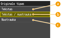 Galite pasirinkti nuskaitomo atvaizdo kokybę, atsižvelgdami į dokumento tipą, pvz., tik teksto dokumentų, dokumentų, kuriuose yra diagramų ar grafikų, arba žurnalo nuotraukų.