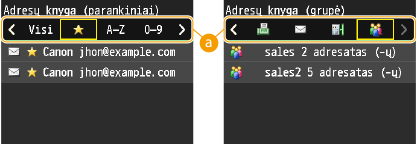 Naudojant adresų knygelę galima nurodyti adresatą pasirenkant iš užregistruotų adresatų sąrašo arba ieškant adresato vardo pagal gavėjų vardus. Galite tiesiogiai nurodyti adresatą įvesdami adresatui priskirtą trijų skaitmenų numerį (kodinio rinkimo numerį).
