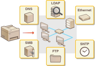 Tinklo konfigūravimas skiriasi atsižvelgiant į tinklo paskirtį. Aparatas sukurtas taip, kad būtų suderinamas su kiek įmanoma daugiau tinklo konfigūracijų, taip pat jame yra įvairių technologijų. Pasitarkite su tinklo administratoriumi ir nustatykite jūsų tinklo aplinką atitinkančią konfigūraciją.