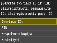 Įveskite iki septynių skaitmenų skyriaus ID. [PIN]