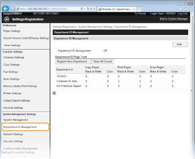 [Department ID Page Total]Pagal skyriaus ID galite sužinoti nukopijuotų, išspausdintų, nuskaitytų ar faksu nusiųstų puslapių bendrą skaičių.