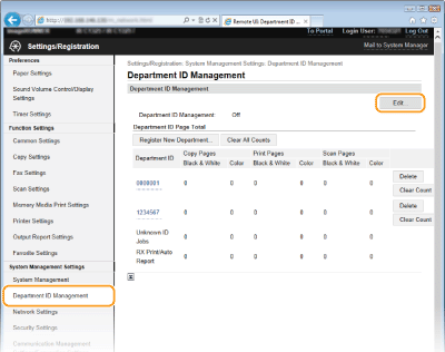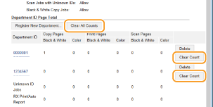 Jei norite grąžinti nulinį skaičių, spustelėkite atitinkamą teksto nuorodą dalyje [Skyriaus ID], tada spustelėkite [Clear Count]