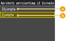 Galite išjungti anksčiau naudotų adresatų pasirinkimą ir parametrus iš perdavimo įrašų, kad jie nebūtų naudojami faksogramoms siųsti arba nuskaityti į el. paštą, bendrai naudojamą aplanką arba failų serverį.