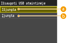 Galite išjungti duomenų spausdinimą iš USB atminties įrenginio. USB atminties įrenginyje esantys duomenys negali būti išspausdinti.