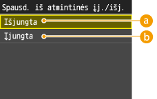Bakstelėkite <Spausdinimo iš atmintinės įjungimas / išjungimas>.