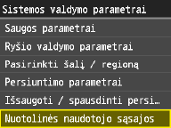 Priemonė „Remote UI“ (Nuotolinio vartotojo sąsaja) naudinga, nes aparato parametrus galima nurodyti naudojant kompiuterio interneto naršyklę. Norint naudoti priemonę „Remote UI“ (Nuotolinio vartotojo sąsaja), aparatas turi būti per tinklą prijungtas prie kompiuterio. Jei aparatas prie kompiuterio prijungtas per USB arba jums nereikia naudoti priemonės „Remote UI“ (Nuotolinio vartotojo sąsaja), galite išjungti priemonę „Remote UI“ (Nuotolinio vartotojo sąsaja), kad sumažintumėte galimybę, jog jūsų aparatą nuotoliniu būdu kontroliuos kenkėjiškos trečiosios šalys.