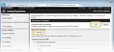 Spustelėkite [Security Settings]  [Remote UI Settings].