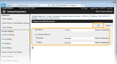 Nustatykite vartotojo vardą / slaptažodį ir spustelėkite [OK].