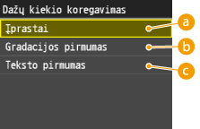 Parametrų prioritetasTaikomojoje programoje ar spausdintuvo tvarkyklėje nurodyti parametrai bus viršesni už nurodytus aparate. Šiame skyriuje aprašyti parametrai ypač naudingi, jei spausdinate iš operacinės sistemos, pvz., UNIX, kuriai skirtų aparato spausdintuvo tvarkyklių nėra.