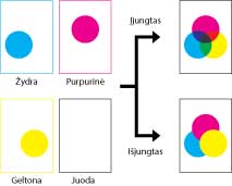 Šis parametras netaikomas spausdinant spalvų taškus vienus ant kitų.