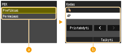 Pasirinkite naudojamą PBX tipą. Jei bakstelėsite <Prefiksas>, paskesniame ekrane užregistruokite prefikso kodą.