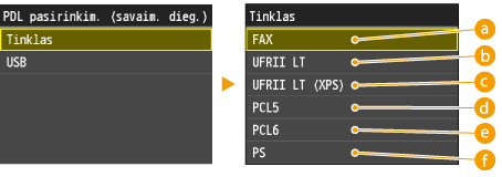 Pasirinkite puslapio aprašo kalbą, kad aparatas būtų aptinkamas kaip su ta kalba suderinamas spausdintuvas, jį prijungus prie kompiuterio naudojant USB.
