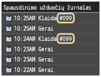 Jei spausdinimas nesėkmingas, negalite siųsti arba gauti faksogramos ar nuskaityto dokumento arba įvyksta kitokia klaida, ta klaida rodoma ataskaitoje arba kaip pranešimas (trijų skaičių numeris – klaidos kodas) ekrane <Būsenos ekranas>. Toliau rasite kiekvieno klaidos kodo priežastis ir sprendimus. Informacijos, kaip išspausdinti klaidos ataskaitą ir ataskaitoje esančią informaciją, žr.