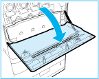 Įdėkite apsaugos nuo dulkių stiklo valytuvą į jo vietą pagrindinės aparato dalies priekinio dangčio vidinėje pusėje taip, kad jo viršūnė būtų kairėje.