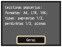 Patikrinkite, ar į aparatą įdėtas ekrane rodomo formato ir dydžio popierius, tada bakstelėkite <Gerai>.