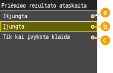 Išspausdinę priėmimo rezultatų ataskaitą, galite tikrinti fakso dokumentų priėmimo žurnalus. Ataskaitą galima spausdinti kiekvienąkart baigus perdavimą arba tik įvykus priėmimo klaidai.