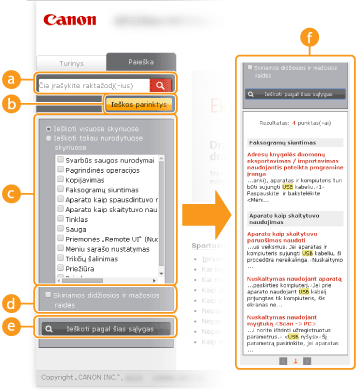 Rodo puslapių, kuriuose yra nurodyti raktažodžiai, ieškos rezultatus. Rezultatuose raskite ieškomą puslapį ir spustelėkite jo temos pavadinimą. Jei rezultatų negalima parodyti puslapyje, spustelėkite
