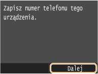 W przypadku dotknięcia opcji <Skonfiguruj później> tryb odbioru zostaje ustawiony na <Autom.>. Aby skonfigurować ustawienia faksu w późniejszym czasie, należy wyświetlić ekran ustawień faksu, naciskając po kolei przyciski <Menu>  <Ustawienia faksu> <Przewodnik ustawień faksu>.