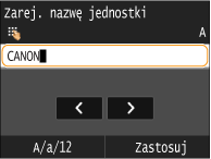 Wprowadź nazwę jednostki (np. nazwę użytkownika lub firmy) (Wprowadzanie tekstu) i dotknij przycisk <Zastosuj>.